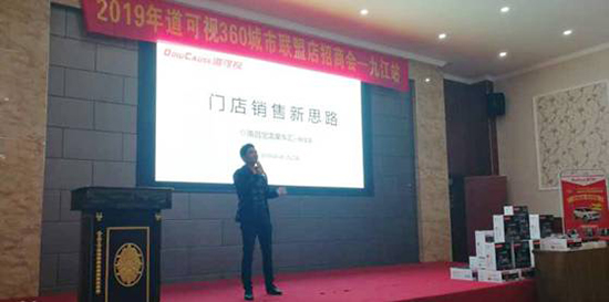 在會(huì)議最后,道可視江西代理商南昌美特麗戴總向門店代表宣講了道可視在九江區(qū)域市場(chǎng)的規(guī)劃和招商策略。