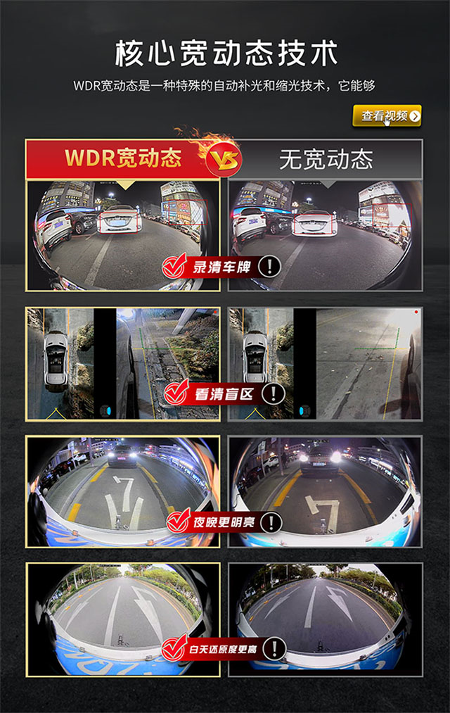 除了“6D”之外,道可視還將4個(gè)攝像頭分辨率提升至2560*1440,同時(shí)“WDR寬動(dòng)態(tài)”影像處理技術(shù)的加持,讓道可視360°全景面對(duì)光照不理想的“極端”情況下,也能夠做到游刃有余。